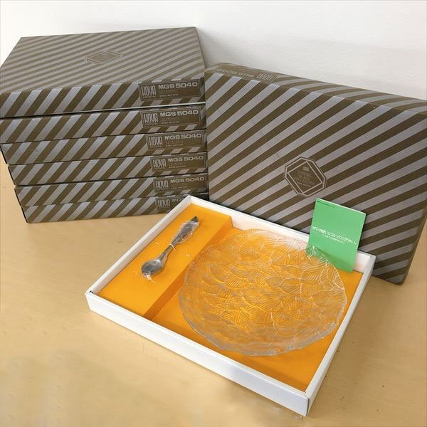 - 401*HOYA CRYSTAL ホヤ クリスタル 大皿 メロンスプーン×5本 メロンすいかセット セット7点まとめ 【長期保管未使用品】
