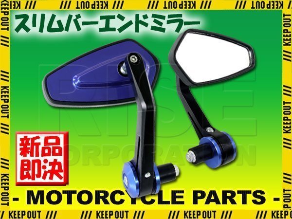 > 汎用 スリムバーエンドミラー ポリゴンタイプ ブルー マットブラック 左右セット モンキー CB650F シグナス SRX600 ザンザス ZRX400-2