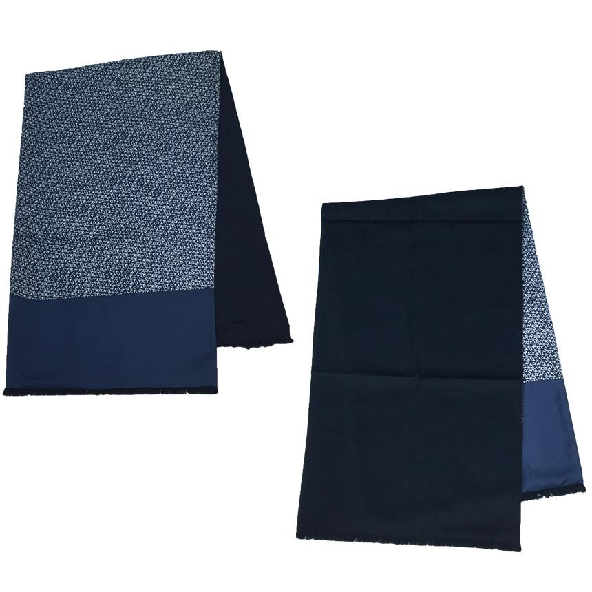 - 送料無料 セール HERMES エルメス マフラー ストール リバーシブル シルク アンゴラ ビット柄 ネイビー 美品 メンズ レディース aq9160