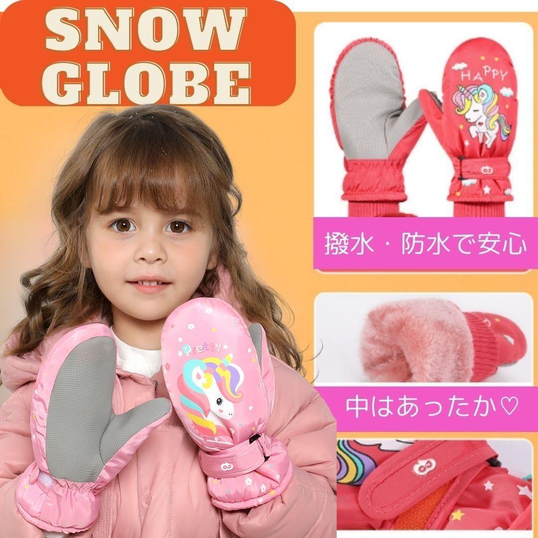 - 472 子ども 手袋 ミトン 裏起毛 スノーグローブ 雪遊び 撥水 防水 女の子 裏ボア あったか 小学生 年長 グローブ ユニコーン ピンク