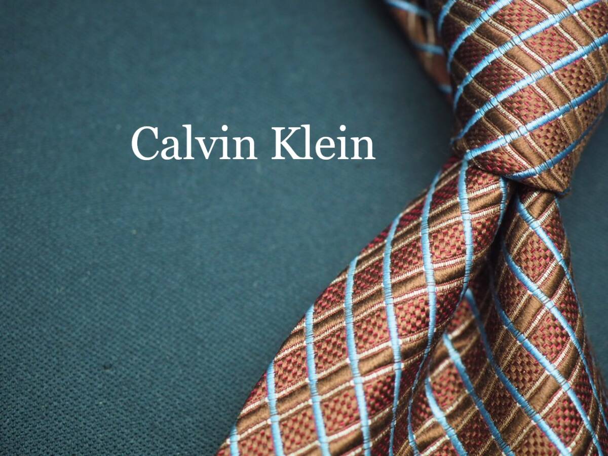 - 美品【Calvin Klein カルバンクライン】 G1022 ブラウン系 SILK ブランド ネクタイ 古着 良品 転売 仕入