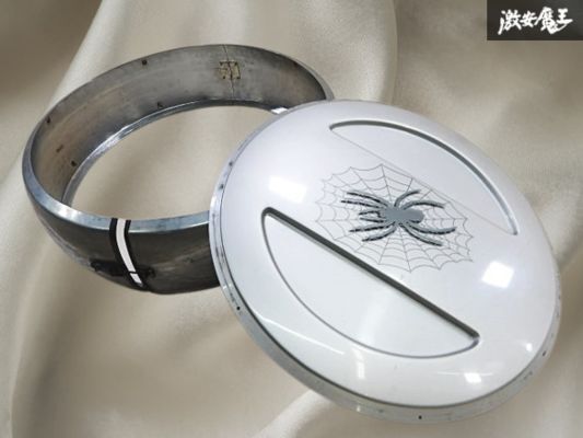 > 純正?社外? 背面 スペアタイヤ カバー ケース シルバー系&メッキ スパイダー クモ 蜘蛛柄 直径約68cm 厚み約18.5cm ジムニー? 棚26-1