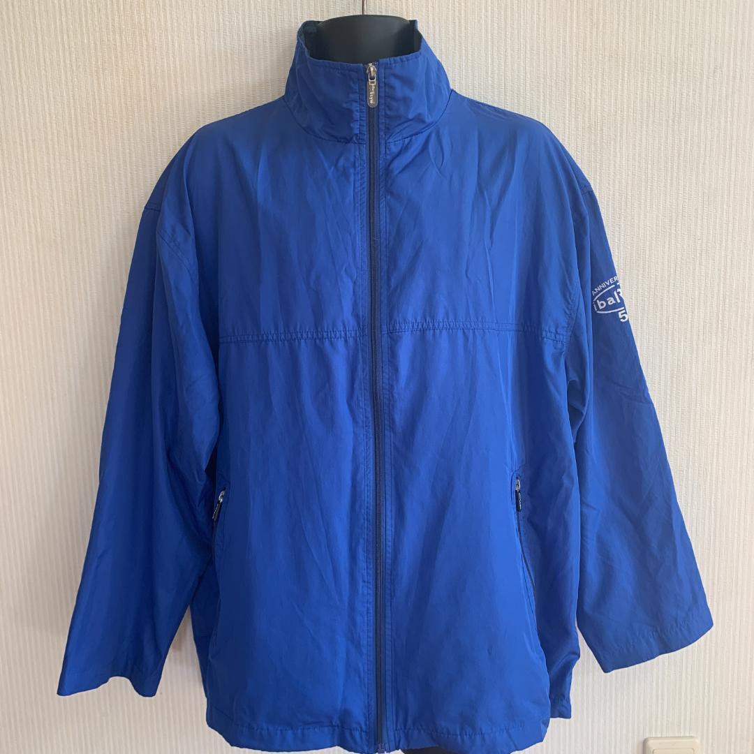 > 古着 青 4L ナイロンジャケット 裏メッシュ スタンドカラー レギュラーカラー