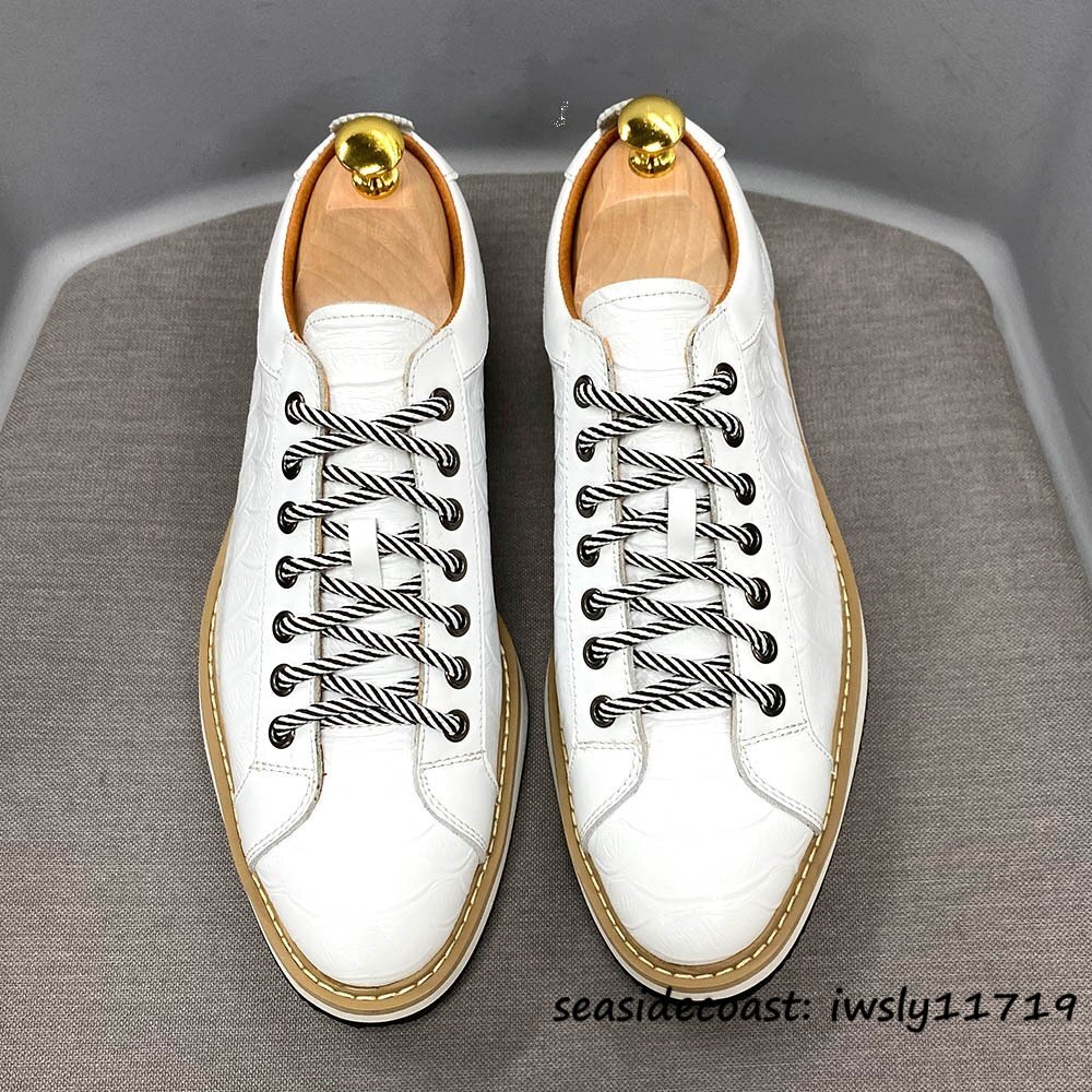 - 定価9万超◆最高級 スニーカー 本革 レザーシューズ メンズ ビジネスシューズ 牛革 革靴 職人手作り紳士靴 軽量ローファー ホワイト 26.5cm