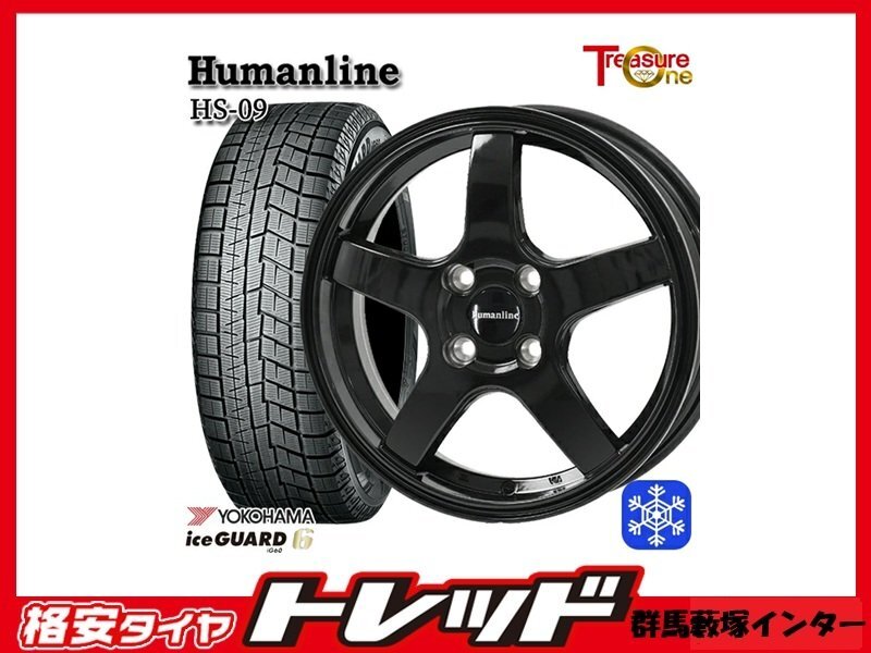 > 藪塚 新品 冬タイヤ ホイールセット HS-09 15インチ4.5J PCD100 4H +45 BK ヨコハマ アイスガード6 IG60 165/65R15 2023~24年製