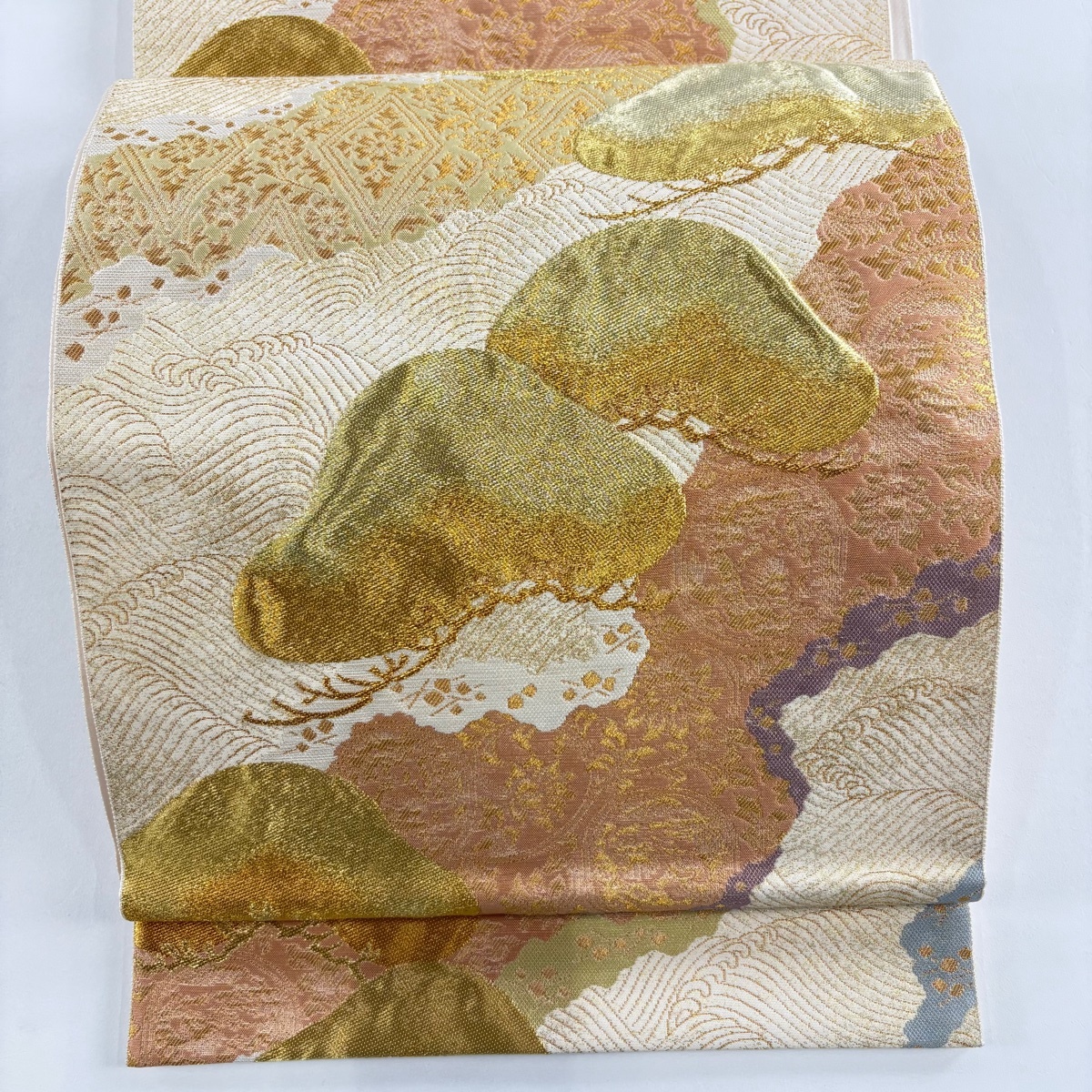 - 【美品】 袋帯 名品 落款 本家加納 笠松 道長取り 金糸 箔 金色 六通 正絹 【中古】