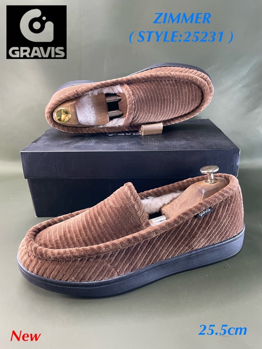 > 名機降臨!定9900円/未使用品!ヴィンテージとモダンの融合!グラビス【ジマー】スリッポン/コーデュロイ/内ボア!ブラウン 25.5cm/US7.5