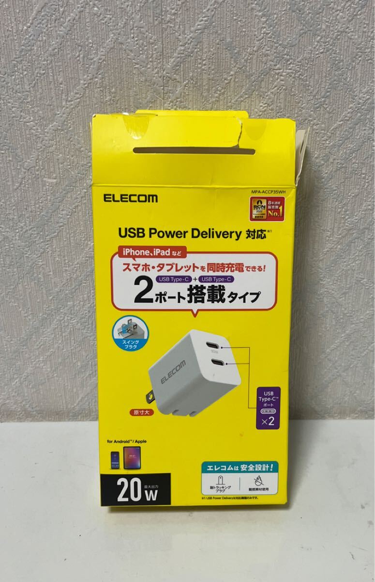 > 711i0816 エレコム(ELECOM) 充電器 Type-C 2ポート USB PD対応 20W 2台同時充電 折りたたみ式プラグ 小型