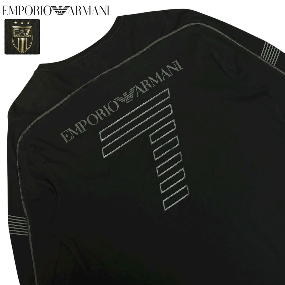 > 極美品/●エンポリオアルマーニロンT 長袖Tシャツカットソー 胸ロゴ バッグロゴ イーグルロゴ ブラックゴールド M EMPORIO ARMANI
