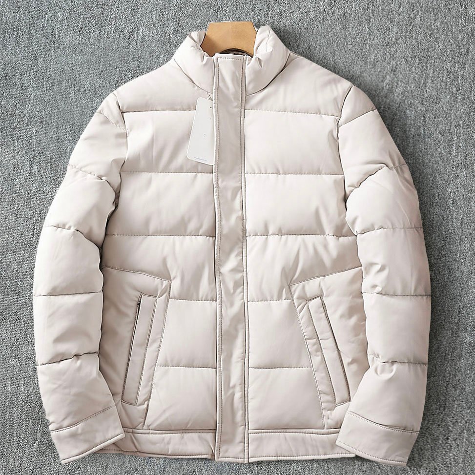 > 欧米サイズ 新品 中綿ジャケット メンズ 厚手 立ち襟 防風 撥水 防汚 防寒 冬服 キルティング ジャケット 秋冬 アイボリー T6005-XL