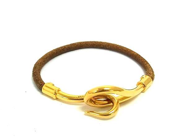 - 1円 HERMES エルメス ジャンボ レザー ゴールド金具 ブレスレット アクセサリー レディース メンズ ブラウン系 FS6254