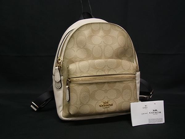 - 1円 COACH コーチ F58315 シグネチャー PVC×レザー リュックサックバックパック レディース ベージュ系×アイボリー系 FU4993