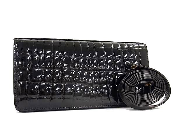 - 1円 ■極上■本物■美品■ Beverly ビバリー クロコダイル 2WAY ショルダーバッグ クラッチバッグ 斜め掛け ブラック系 FU4947