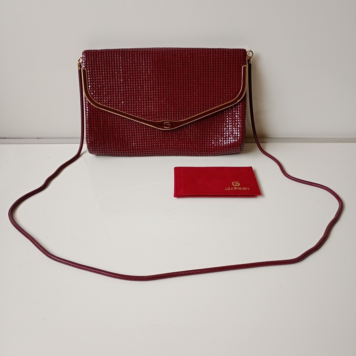 - 【GLOMESH】グロメッシュ ビーズメッシュ パーティーバッグ 鏡付き ショルダー ボルドー ワイン