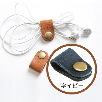 - 本革 コードクリップ ネイビー ケーブルクリップ ケーブルフォルダー イヤホンコード 巻取り 充電ケーブルホルダー