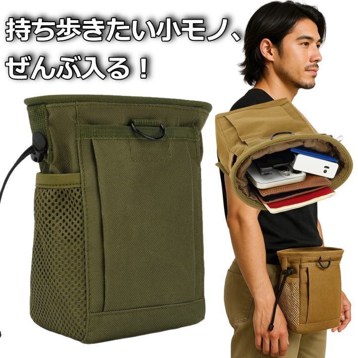 - ウエストポーチ ポーチ メンズ レディース 収納力抜群 アウトドア 散歩 旅行 キャンプ サバゲー 7987000 オリーブ 新品 1円 スタート