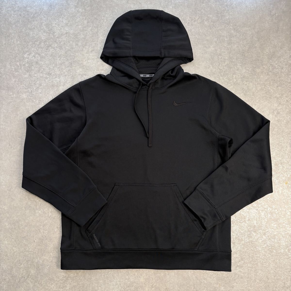 - NIKE ナイキ THERMA-FIT ブラック パーカー 刺繍ワンポイントロゴ Lサイズ