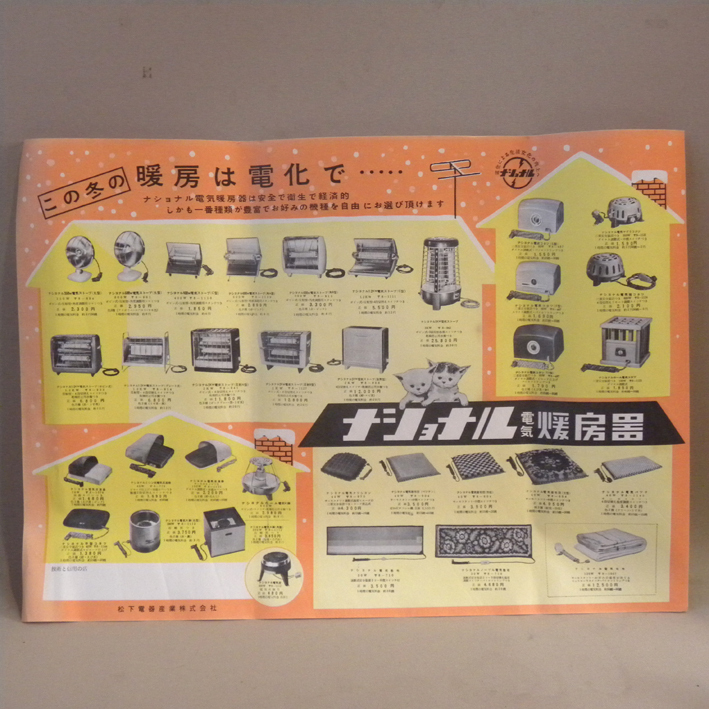 - 1950年代 当時物 松下電器 ナショナル 暖房器 チラシ c ( 古い 昔の ビンテージ 昭和レトロ 昭和家電 広告 宣伝 宣材 )
