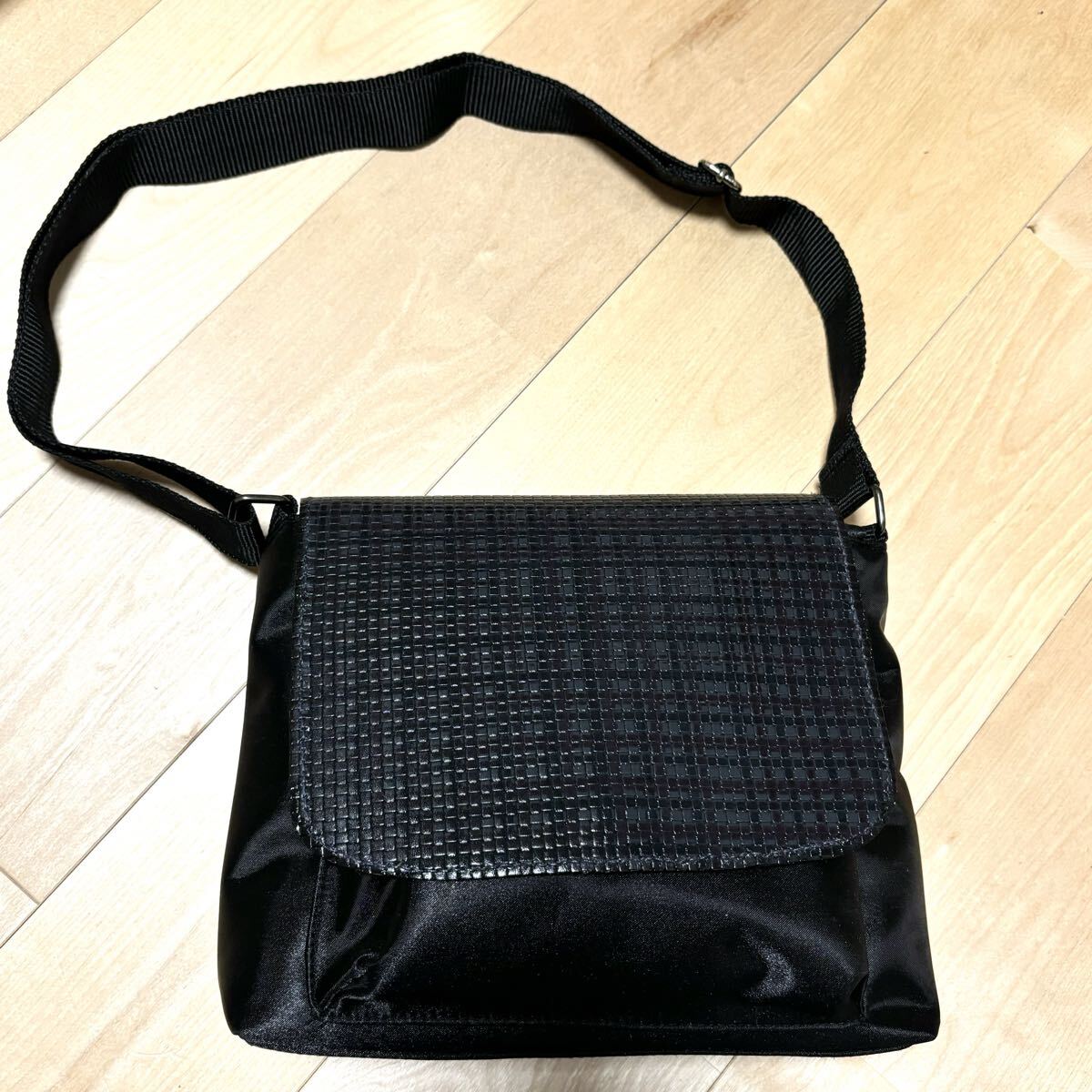 - 新品未使用 本革使用ナイロンショルダーバッグ ブラック 黒 レザー 軽量 メッセンジャーバッグ サコッシュ 斜めがけ