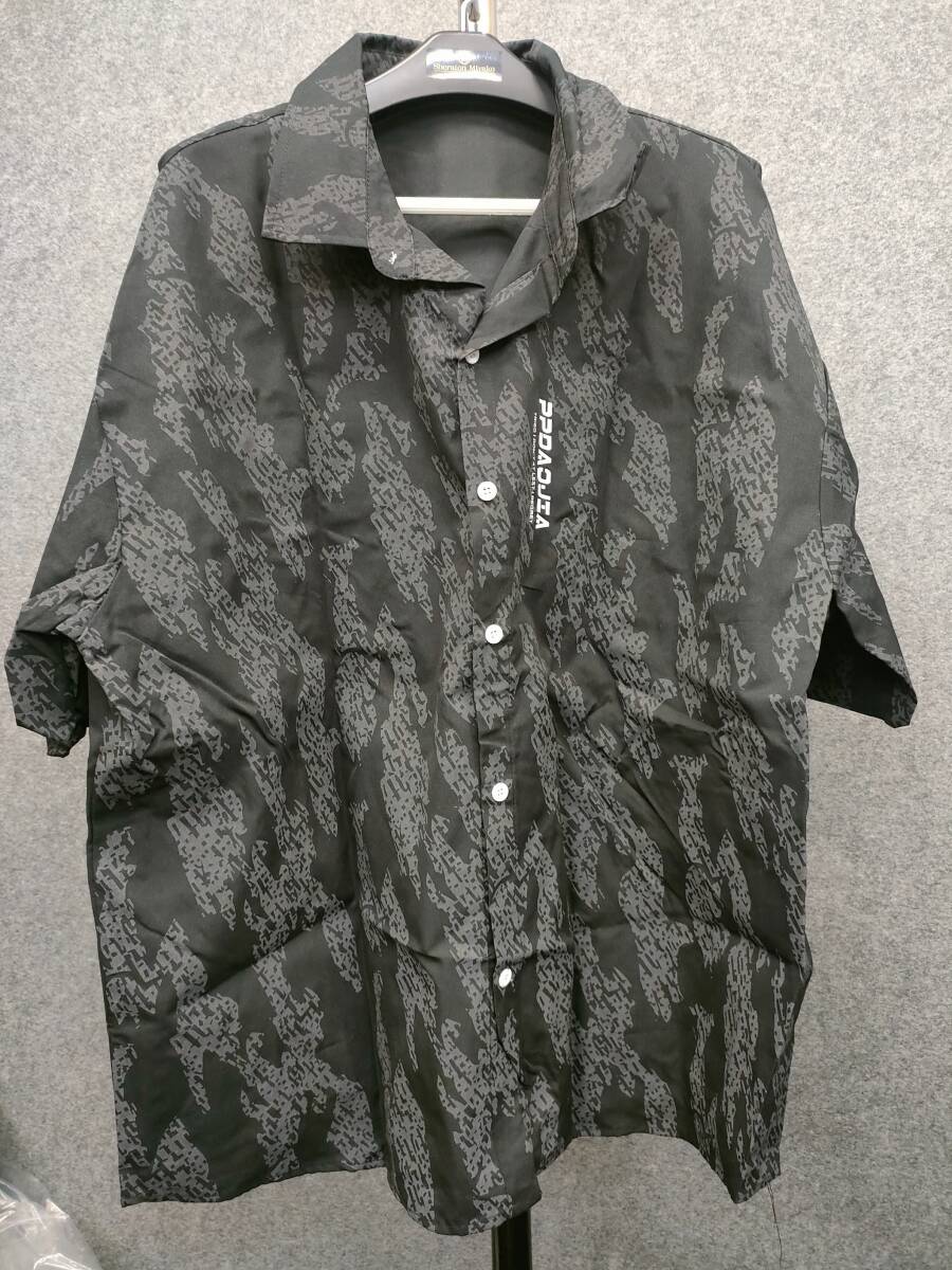 > ★vintage 総柄シャツ 黒 ビッグサイズ DS001半袖シャツ サイズ4XL メンズ 半袖シャツ