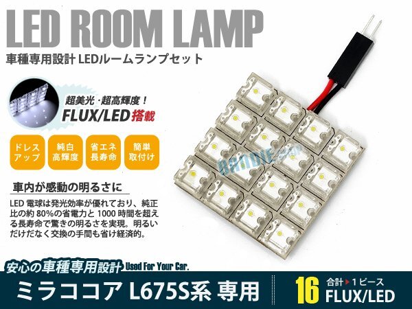 > L675S系 ミラココア 1ピース 合計16ブロック発光 ルームランプ LED化 白発光 高輝度FLUXタイプ 一台分セット