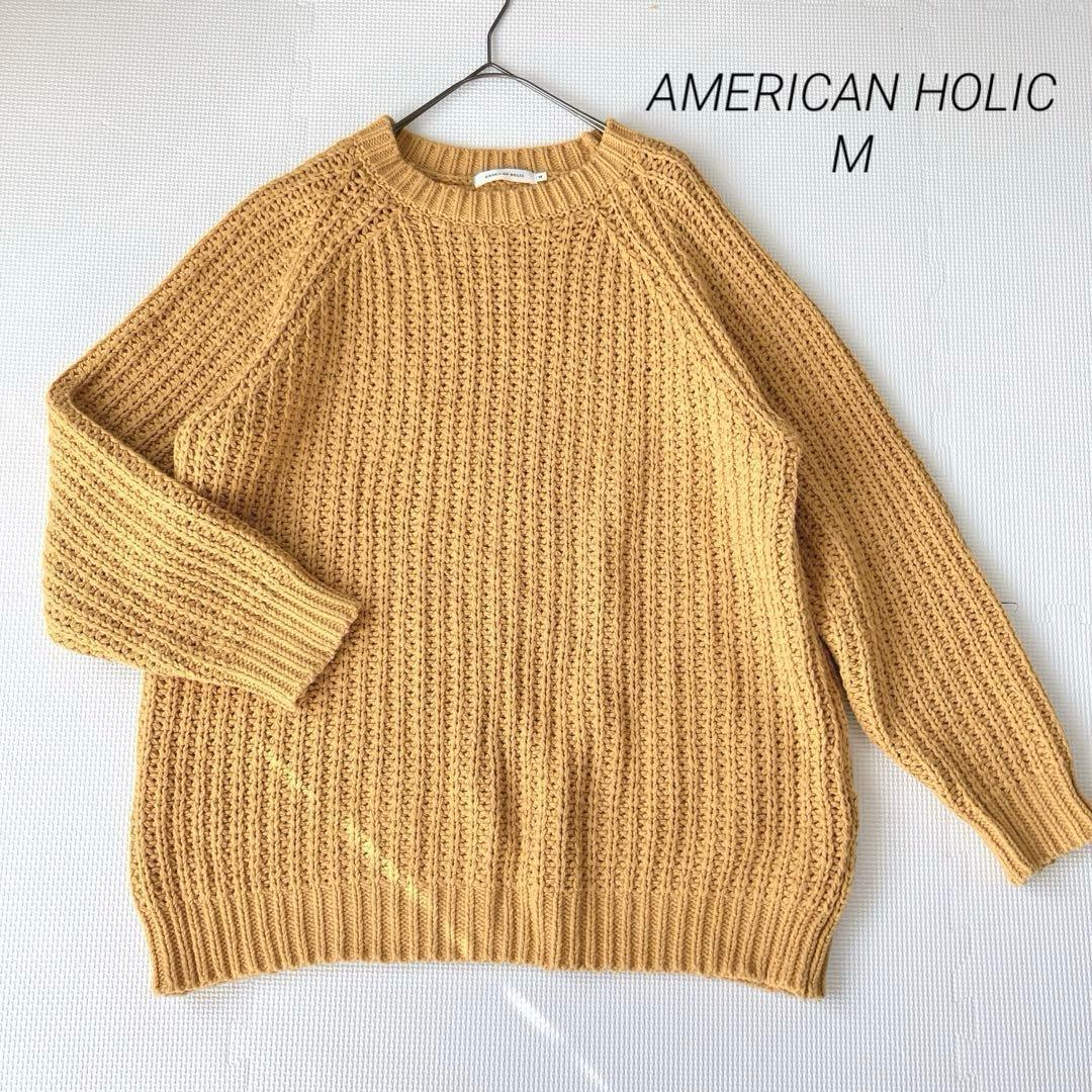 - 良品アメリカンホリック ニット M オーバーサイズ ざっくり編み イエロー