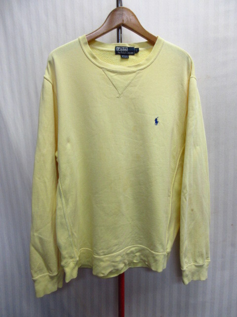 - ラルフローレン 90sヴィンテージ トレーナー メンズL 黄 イエロージャージトップ スウェットトレーナー 前V地ガゼット カットソー11051