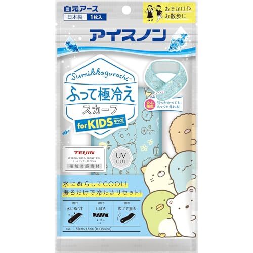 - すみっコぐらし こども用スカーフ(50×6.5cm) アイスノン ふって極冷えスカーフ すみっコぐらし 子供用 冷却 接触冷感 ひ