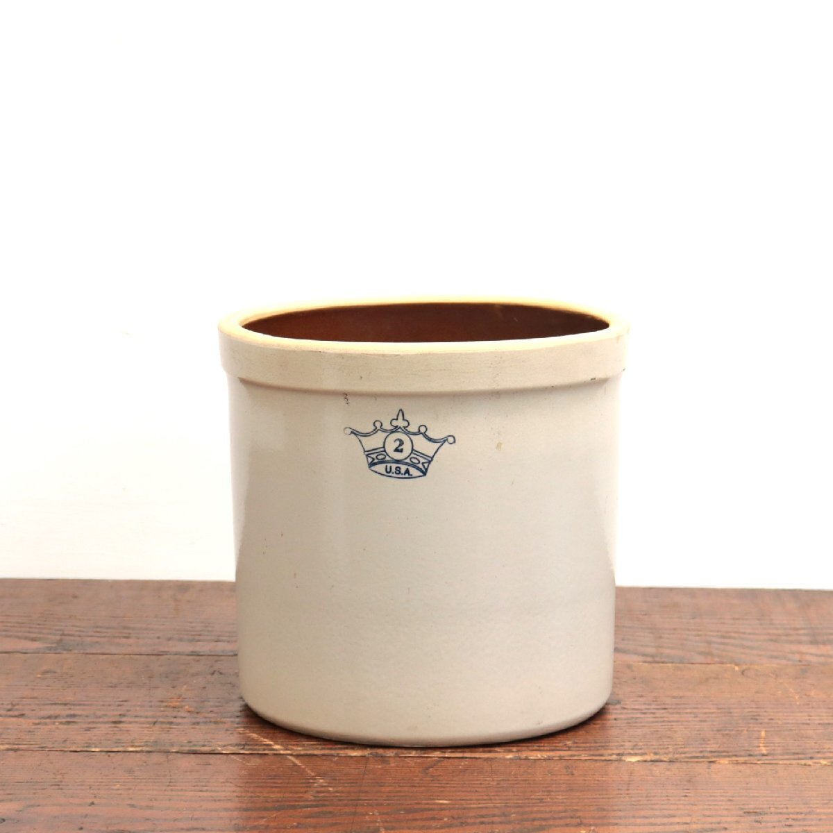 - #4048 アメリカ アンティーク 壺 かめ 陶器製 ポッタリー プランター 食料保存容器 プリミティブ キッチン雑貨