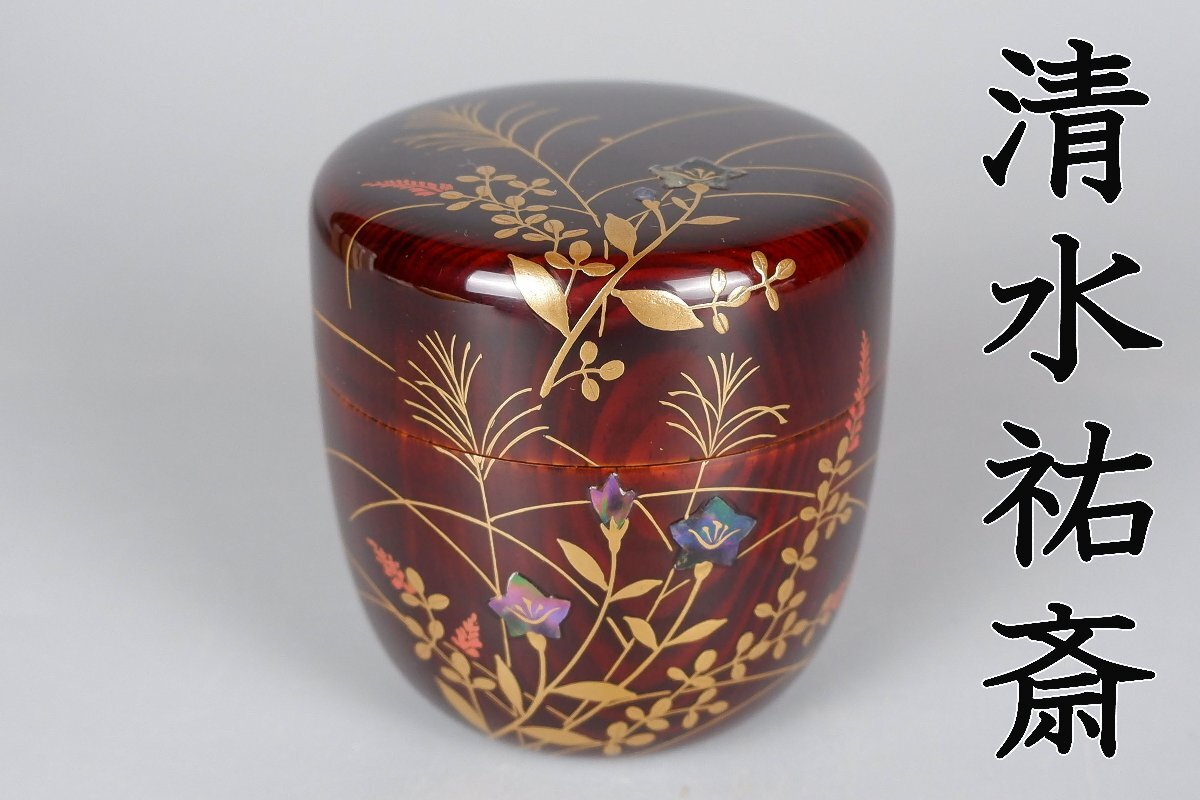 > 【MKA】山中塗 清水祐斎 秋草蒔絵溜大棗 共箱 塗師 石川 季節の茶道具 真作保証