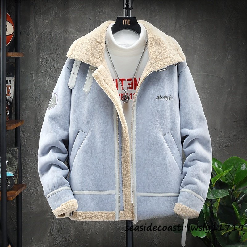 > 超美品◆定価12万 最高級 ムートンコート メンズ ブルゾン ファーコート ライダース ジャンバー フライトジャケット 配色 厚手 紳士 5XL