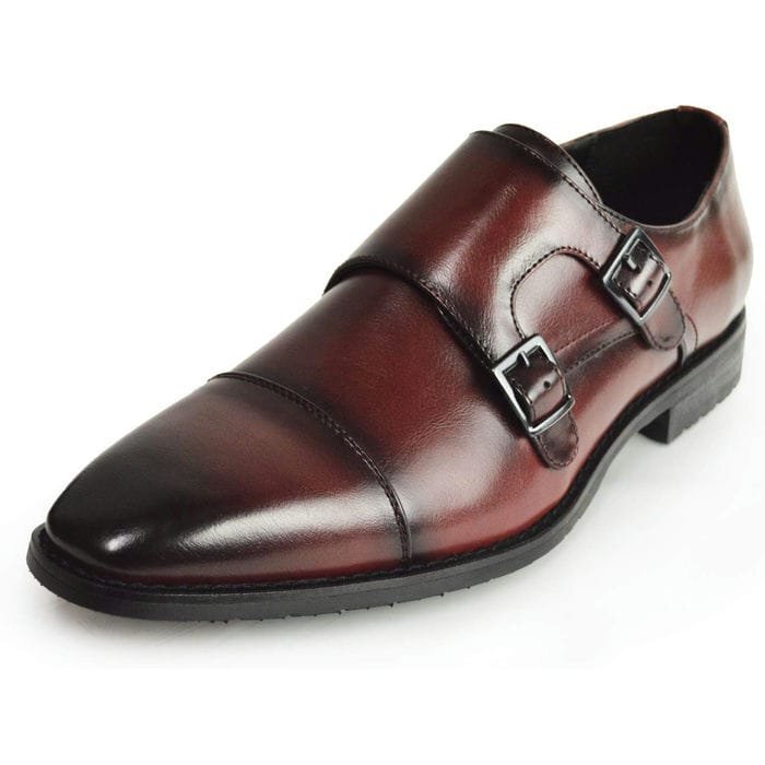 - 新品■25cm 機能性 ビジネスシューズ 幅広 モンクストラップ ストレートチップ ダブル ベルト 紳士靴 冠婚葬祭 オフィス フォーマル 革靴