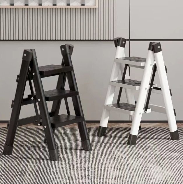- 脚立 踏み台 アルミ 折りたたみ 3段 おしゃれ ステップ台 スツール キャタツ はしご 梯子 室内 屋外 ハシゴ コンパクト(ホワイト)