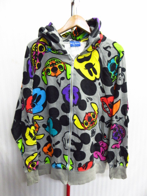 - ディズニー ミッキーマウス総柄フルジップパーカー メンズL カラフルデザイン スウェットフーディー ブルゾン フードジャージトップ11074