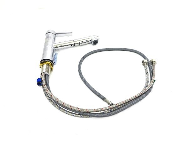 - 1円スタート DAYONE 引き出し式キッチン水栓 蛇口 ステンレス製 混合栓 120°回転 2つ水流パターン G1/2接続 337BC シルバー A13466/JS