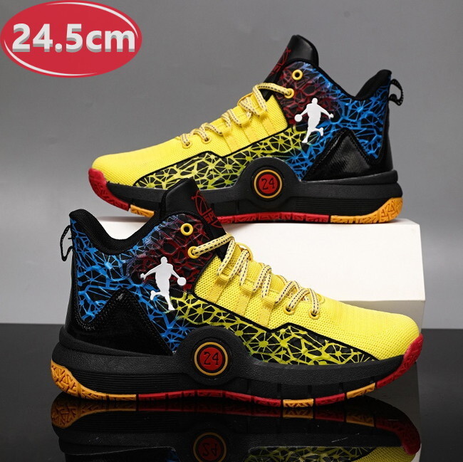 > 1スタ ☆ メンズ スニーカー 24.5cm イエロー 靴 シューズ 防滑 バスケットシューズ 通勤 通学 旅行 【126】