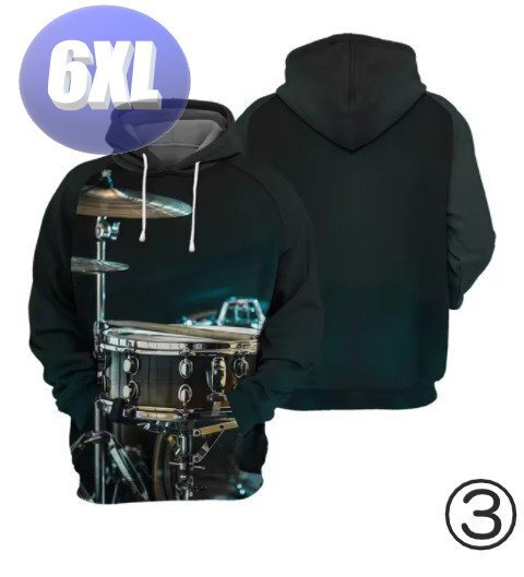 - フード付き 楽器パーカー ドラム 6XL トレーナー アウター 防寒 n724-3
