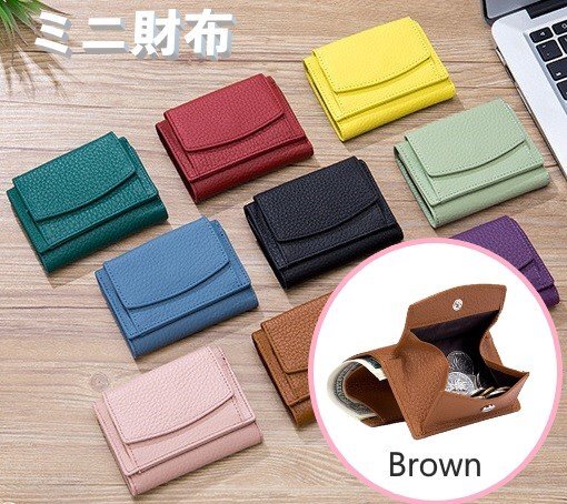 - ミニ財布 ブラウン 財布 本革 牛皮 レディース 使いやすい 三つ折り財布 コンパクト 小さめ スキミング防止 RFID n519