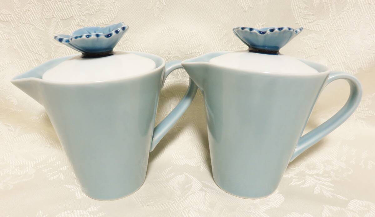 - 美品 栗原はるみ ペア ティーポット 茶こし付き ティータイム マイポット フタがフラワーモチーフ お茶 緑茶 急須 紅茶 食器 ゆとりの空間