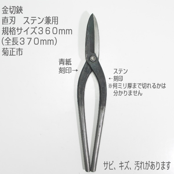 - 【未使用訳あり品】金切鋏 360mm 直刃 ステン 菊正市