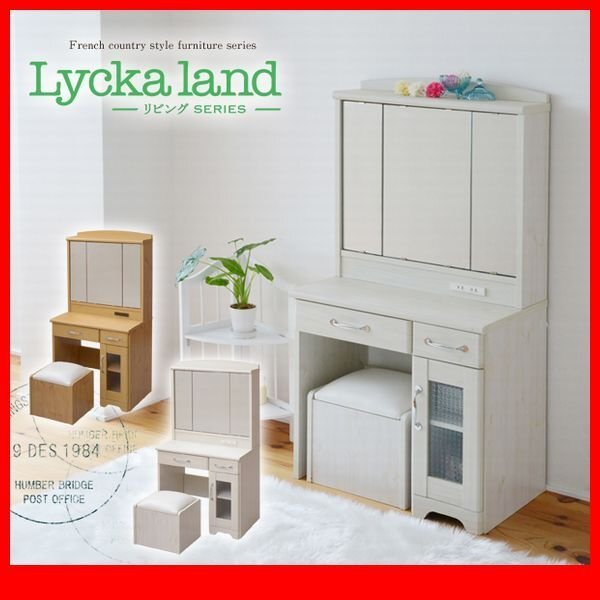 > カントリー調/三面鏡 ドレッサー&スツール/省スペール コンパクト 1人暮らしに/鏡内 スツール内も収納OK/白/新品 即決 特価 限定/a3