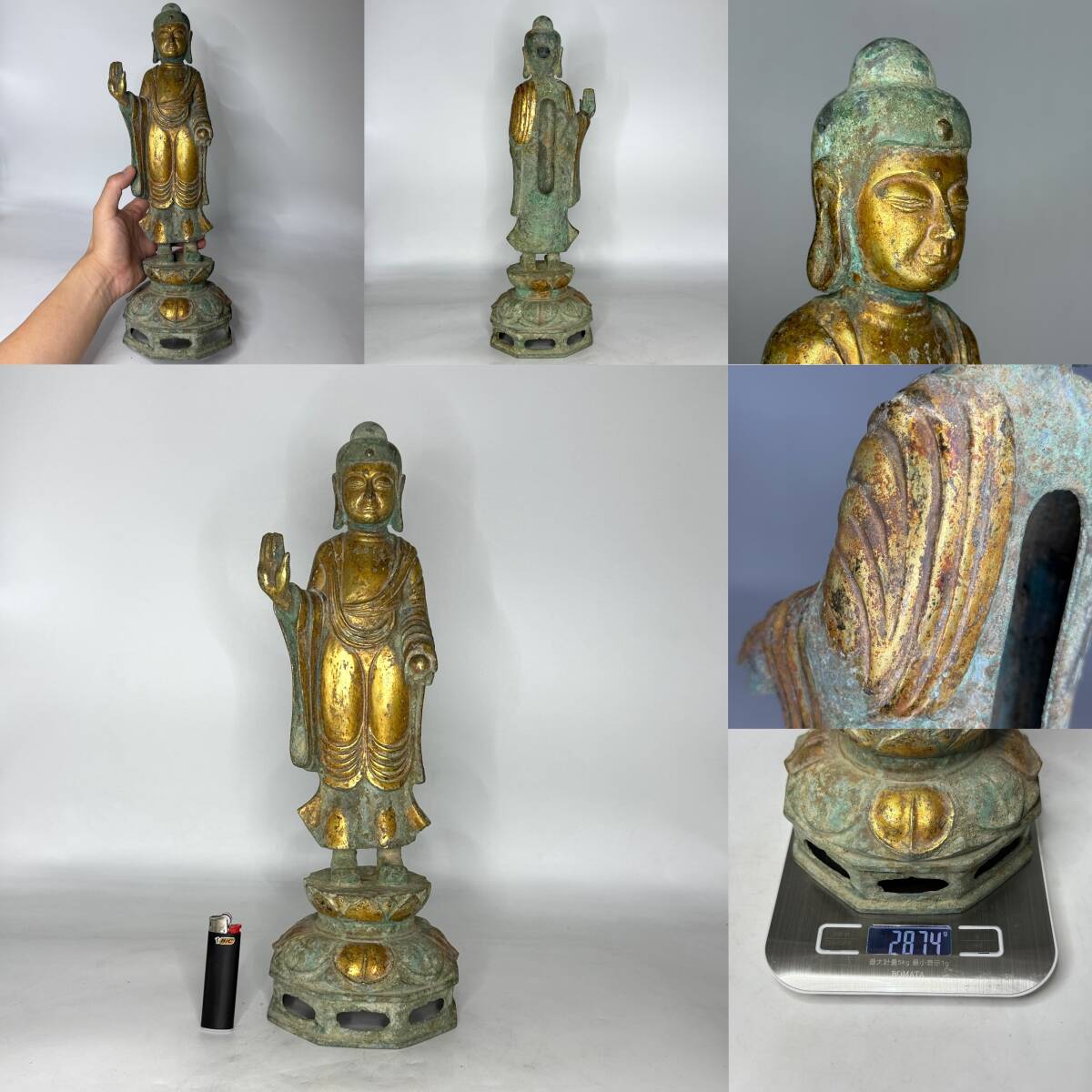 > 時代物 旧家整理品 朝鮮 金銅仏立像 高さ約41cm 重量約2874g(高麗 李朝 古銅 仏像 仏教美術 香道具 文房具 唐物 中国美術 骨董品