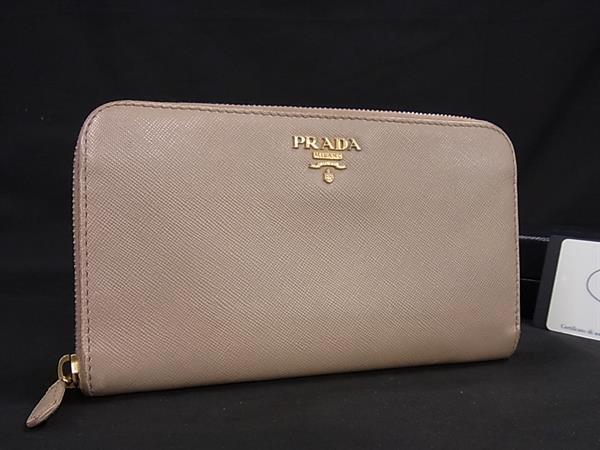 > 1円 PRADA プラダ 1M0506 サフィアーノレザー ラウンドファスナー 長財布 ウォレット 小銭入れ 札入れ レディース ベージュ系 FQ3018