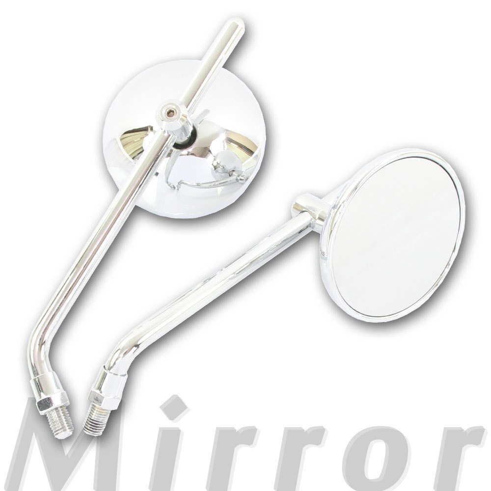 - 3インチ メッキ ラウンドミラー 丸型ミラー 取り付けネジ10mm 8mm ハーレー用ステー 正ネジ 逆ネジアダプター付き 左右セット XL FXD FXS