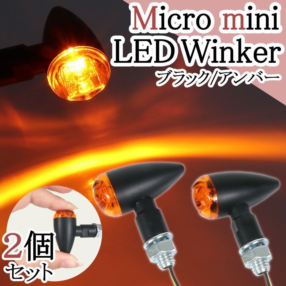 > マイクロ ミニ LED ブレット ウインカー 弾丸型 超小型 車検対応 ブラックボディ アンバーレンズ CB125R 400X モンキー VTZ250 CL400