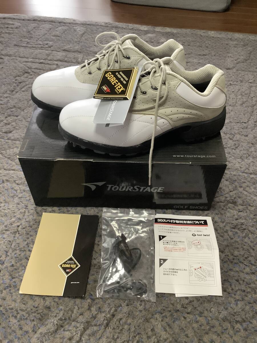 - 新品未使用品 TOUR STAGE ツアーステージ ゴルフシューズ 25㎝ 白 箱付き