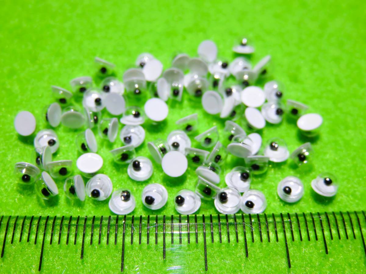 > 【◎コミカルアイ◎動眼3mm100個◎】くるくる きょろきょろ 動く 目玉 他のサイズや丸タイプと楕円(だえん)タイプもあります^^