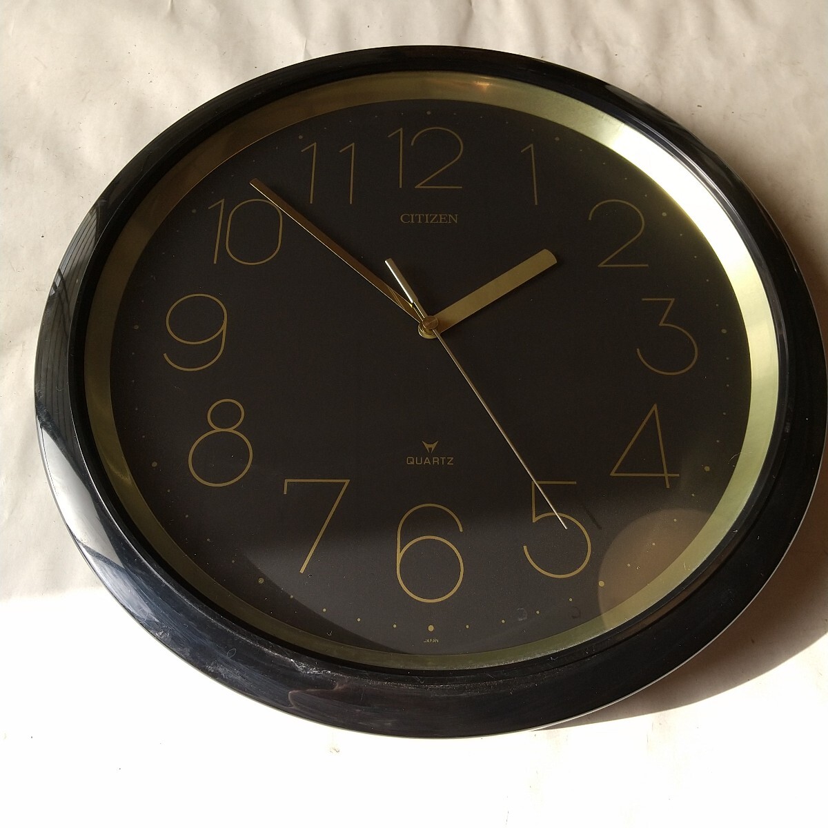 - No.912 CITIZEN 壁掛け時計 クォーツ 時計 黒×ゴールド