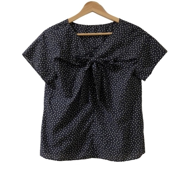 > マッキントッシュフィロソフィー MACKINTOSH PHILOSOPHY 半袖カットソー サイズ36 M - ネイビー×白 レディース Vネック/ドット柄/リボン