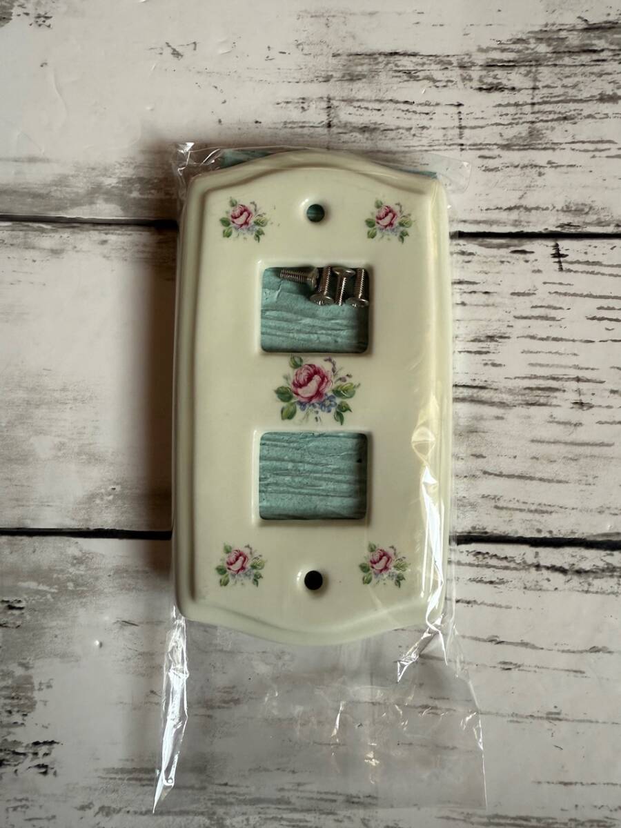 > 未使用★アンティークローズ★スイッチプレート スイッチカバー コンセントカバー 陶器 2個セット 2ケ口